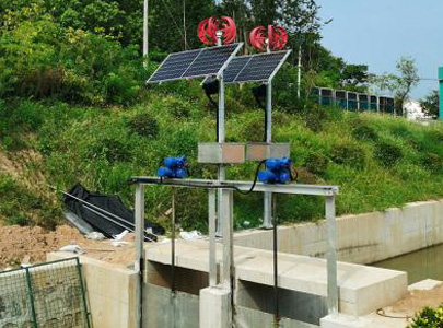 由太陽能光伏板和小型風(fēng)力發(fā)電機(jī)為蓄能電池組充電,電池組有BMS電池管理軟件管控,為永磁無刷直流電機(jī)的各類驅(qū)動裝置供電,同時(shí)為視頻監(jiān)控,壓力、流量、液位傳感器,照明等供電